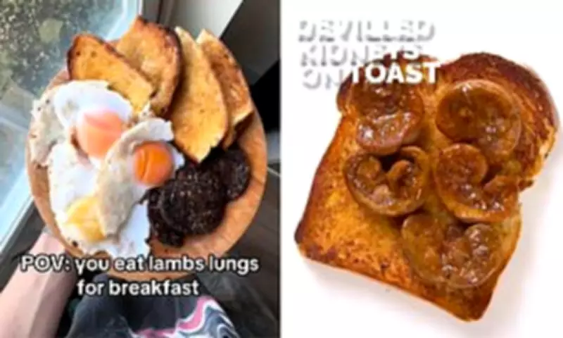 The trend extends to breakfast dishes as well, with @eggsdaily4life sharing footage of lamb lungs incorporated into a morning meal, humorously declaring: "We ain't scared of offal for breakfast."