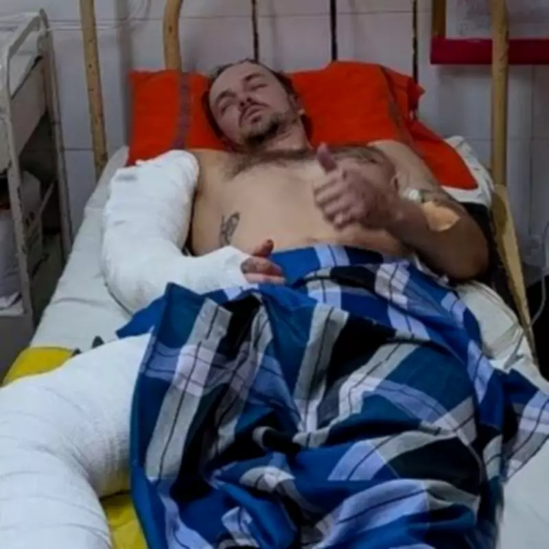 Shocking photos from the hospital show Alex in a bed with his leg in plaster and metal pins screwed into it. He has undergone surgery to fit an external fixator on his leg and is scheduled for a skin and muscle graft as part of his recovery process.