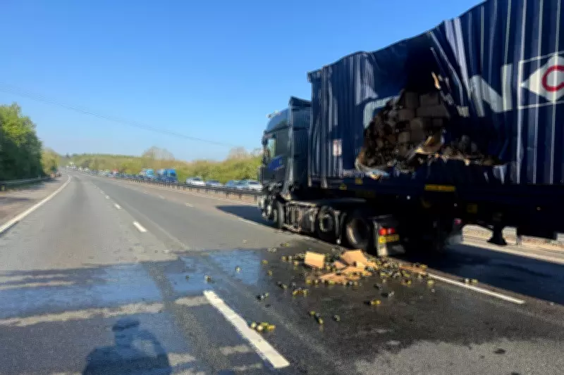 A lorry transporting 20 tonnes of prosecco collided with another heavy goods vehicle on the M4 motorway on Monday morning, causing boxes of the Italian sparkling wine to spill across the carriageway and leading to what police described as "major disruption."