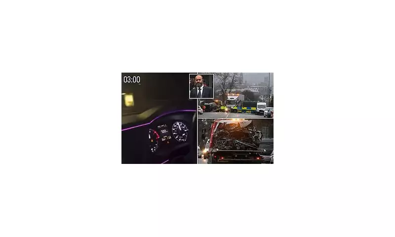 The heart-stopping clip shows the vehicle weaving through traffic on a residential street at night, at times veering onto the wrong side of the road to overtake. At one point, the camera pans to the car's digital speedometer, which displays 122mph. The road has a 30mph limit.
