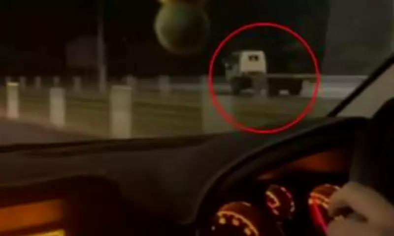 Occupants of a southbound vehicle filmed the truck travelling at a similar speed to their own car. In the footage, a woman can be heard exclaiming, 'that's insane,' moments before a loud crash and a burst of flames are witnessed.