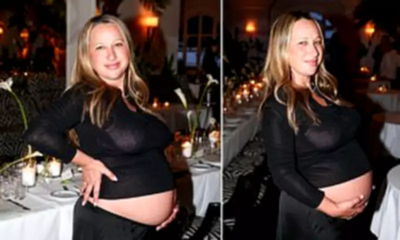 Meyer chose a sophisticated yet revealing outfit for the special occasion, wearing a semi-sheer crop top that highlighted her growing baby bump. She paired this with a black satin skirt featuring delicate lace details, creating an elegant evening look. The designer completed her outfit with brown leather sandals adorned with studded accents, maintaining a comfortable yet fashionable approach to maternity wear.