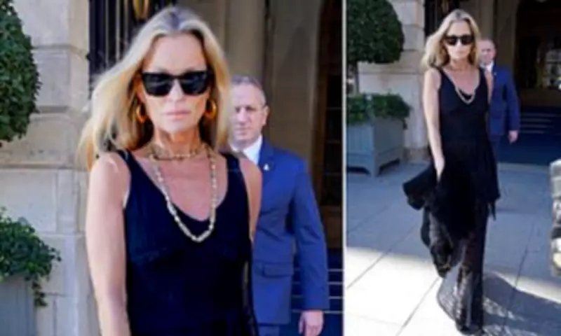 British supermodel Kate Moss, aged 52, made headlines this week after a tense encounter where she shouted "don't touch me" at a passerby during Paris Fashion Week. The incident occurred on Tuesday evening as she arrived at the YSL show held in front of the Eiffel Tower, arm in arm with American model Frankie Rayder.