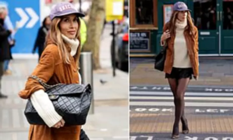 Myleene Klass showcased her signature style on the streets of London this Thursday, opting for a bold ensemble despite the chilly weather. The 47-year-old presenter and former Hear'Say singer turned heads as she paired black lace shorts with sheer tights and eye-catching leopard print heels, creating a striking look that highlighted her long legs.