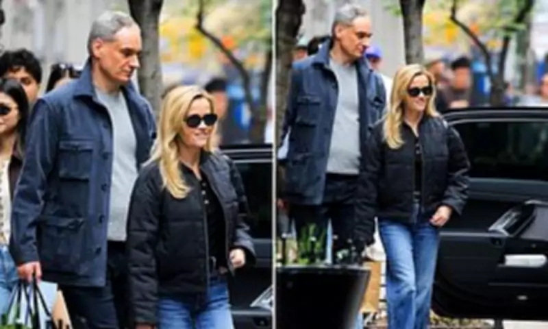 Reese Witherspoon and her boyfriend, Oliver Haarmann, were seen enjoying a shopping excursion together in Manhattan's fashionable SoHo district on Saturday, showcasing their ongoing romantic connection. The 50-year-old Academy Award-winning actress, dressed in blue jeans and a black quilted bomber jacket, appeared cheerful as she guided the 58-year-old German financier toward their awaiting vehicle.