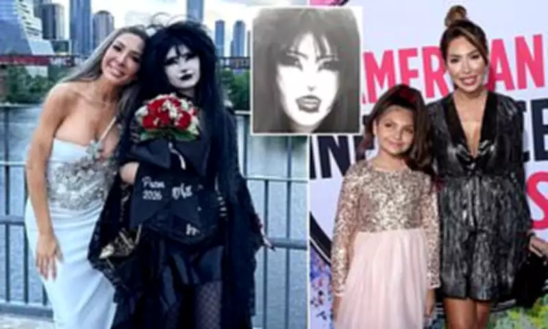 Sophia Abraham, the 17-year-old daughter of reality television star Farrah Abraham, celebrated her prom this week with a strikingly unconventional ensemble that has captivated and divided fans. The homeschooled teenager opted for an all-black gothic glam look, featuring a lace and leather dress, thick black eyeliner, and eerily white foundation, creating a dramatic contrast to her mother's skintight white dress adorned with bedazzled crystal embellishments and a plunging neckline.