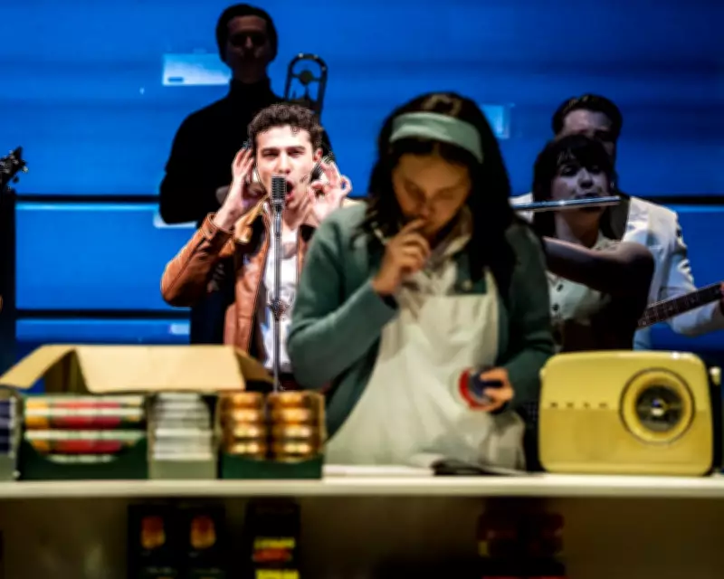 A talented actor-musician cast deliver the show with rebellious energy. Jake Halsey-Jones and Claire Lee Shenfield, as Robbie and Caroline, match an endearing chemistry with charming vocal performances. Numbers by the Beatles, the Rolling Stones, the Kinks and more impressively showcase the ensemble’s multifarious instrumental skills and are perkily choreographed. The Beach Boys’ Wouldn’t It Be Nice comes with magnificent backing vocals, and there is a glorious Twist and Shout that literally rocks the boat.