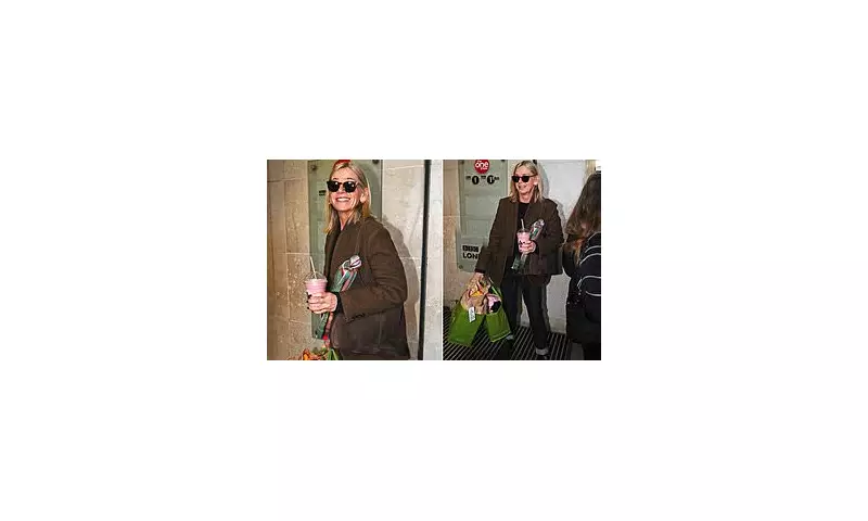 For her final recording day, Zoe Ball cut a stylish figure in a brown tweed blazer paired with dark denim roll-up jeans, a black sweater, and sunglasses. She was seen sipping a smoothie from Joe & The Juice and carrying several full Waitrose bags as she paused to take selfies and sign autographs for fans outside the studio.