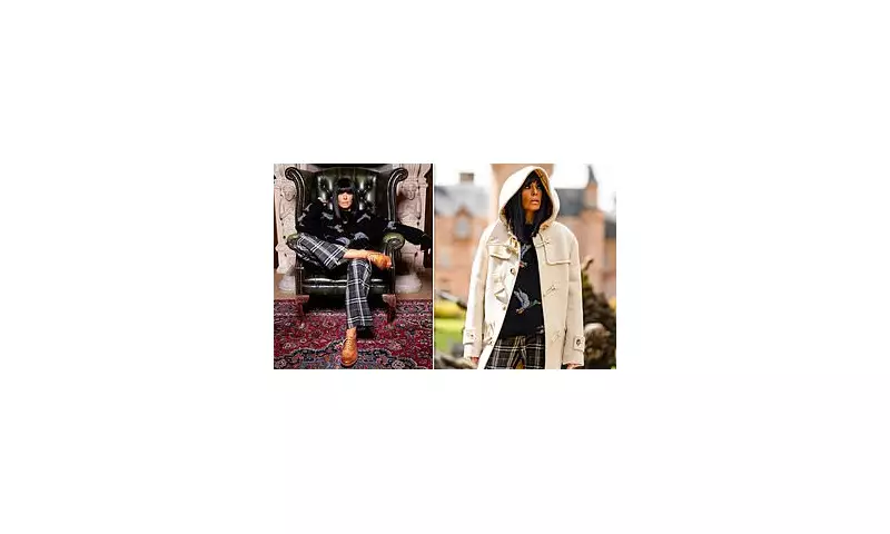 New promotional images reveal the presenter in a series of striking ensembles set to feature in the upcoming instalments. In one powerful shot, Winkleman fixes the camera with a smouldering gaze while perched on a distinctive green leather armchair. Her outfit, a masterclass in eclectic chic, featured grey tartan trousers paired with a black oversized jumper adorned with a playful duck print.