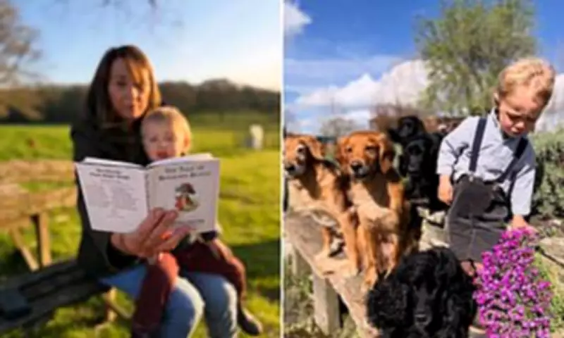 In the photos, Carole Middleton, 71, is pictured as a doting grandmother, reading 'The Tale of Benjamin Bunny' to little Inigo, who is perched on her lap on a bench during a sunny day out. Other images show Inigo enjoying the outdoors, roaming around flowers and playing with the family dogs. A cute video captures him keeping up with his mother and their pooch on a bicycle as they speed through a countryside stroll.