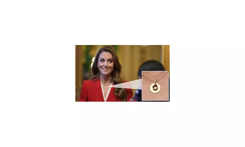 The Princess of Wales chose a deeply personal piece of modern jewellery to complement a classic scarlet suit as she hosted England's champion women's rugby team at Windsor Castle. Kate, 44, welcomed the Red Roses this afternoon to celebrate their historic Rugby World Cup triumph last autumn.