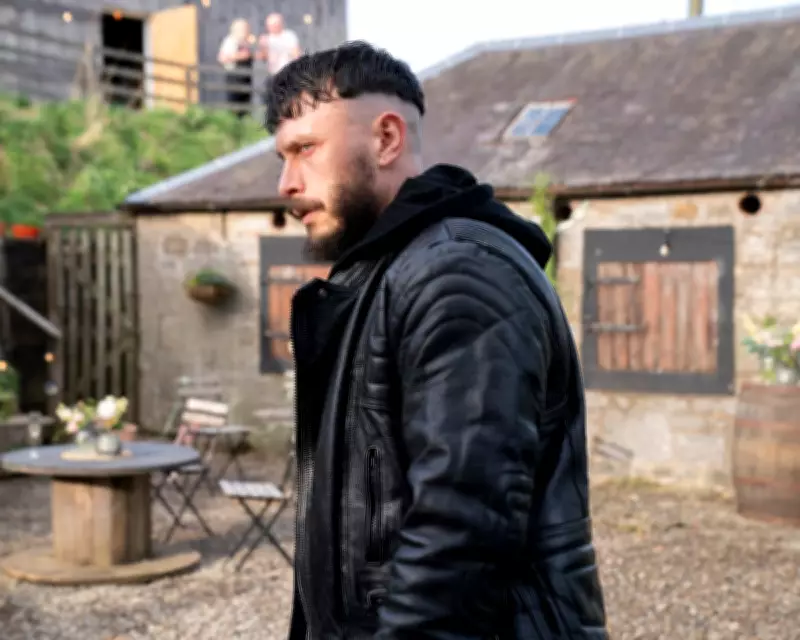 The story begins in the present day, with two men, Niall (Jamie Bell) and Ruben (Richard Gadd), circling each other in a dark barn. Niall is dressed in full Scottish wedding attire, while Ruben stands stripped to the waist, hands wrapped like a boxer. The tension is palpable, hinting at an impending fight that seems far from fair.
