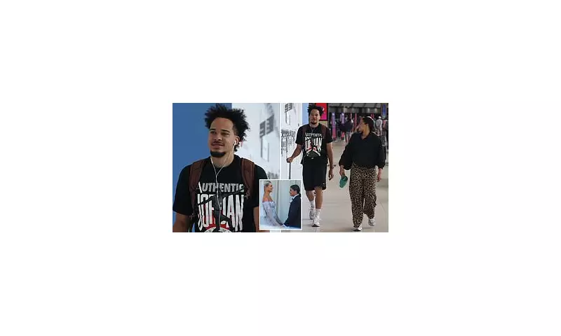 The couple, who married themselves in Malibu in December 2024, were evidently still riding the romantic high from the New Year's Eve nuptials of Australian football icon Sam Kerr and her partner, US international Kristie Mewis. The 30-year-old reality TV winner kept his travel attire relaxed but stylish, opting for a black Nike Air Jordan T-shirt paired with simple black Dickies shorts and crisp white Nike trainers.