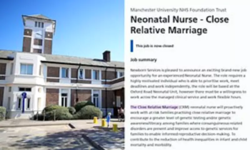 A major NHS Trust in Manchester recently advertised what it described as an "exciting new job opportunity" for a close-relative marriage nurse, specifically designed to support cousins who are having children together. The position, which has now closed for applications, was promoted earlier this year with the stated aim of enabling "informed reproductive decision making" within affected communities.