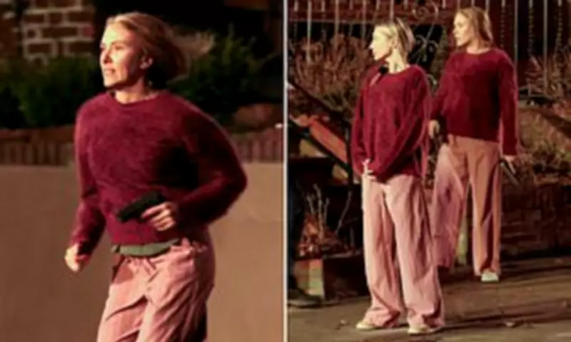 Johansson embraced a more natural look for the shoot, going makeup-free with her blonde hair styled into a long braid, a departure from her usual Hollywood glamour. In the filmed moment, she emerged from a house appearing terrified, gun in hand, before giving chase. Between takes, she engaged with the crew to ensure everything was perfectly aligned before cameras rolled.