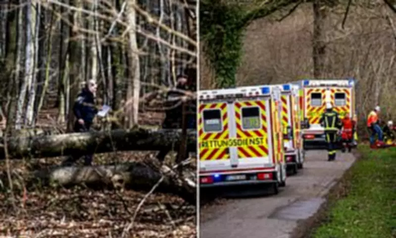 A mother and her infant daughter were among three individuals tragically killed when a massive tree collapsed during an Easter egg hunt in Germany. The incident occurred in woods near the northern town of Satrupholm, where strong winds toppled the 100-foot tree at approximately 11 a.m., according to local police reports.