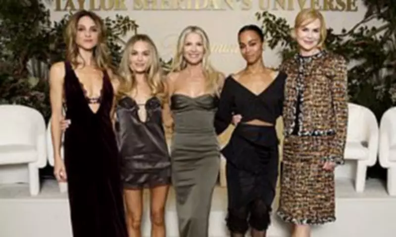 From left to right, the lineup included Beau Garrett, Michelle Randolph, Ali Larter, Zoe Saldana, and Nicole Kidman. Each star represents a different series within Sheridan's expanding television universe.