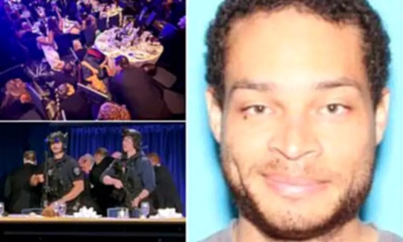 Police revealed that Allen had multiple weapons on him, including a shotgun, a handgun, and several knives. President Trump shared an image shortly after the shooting, showing the suspect shirtless and lying face down on the carpet. Law enforcement confirmed that Allen was not struck by gunfire while being subdued but has been taken to the hospital for evaluation. Allen was a guest at the Hilton hotel where the event was taking place. Surveillance video shows him sprinting past a security checkpoint and attempting to reach the doors to the ballroom where the president, senior cabinet members, and thousands of journalists were gathered.