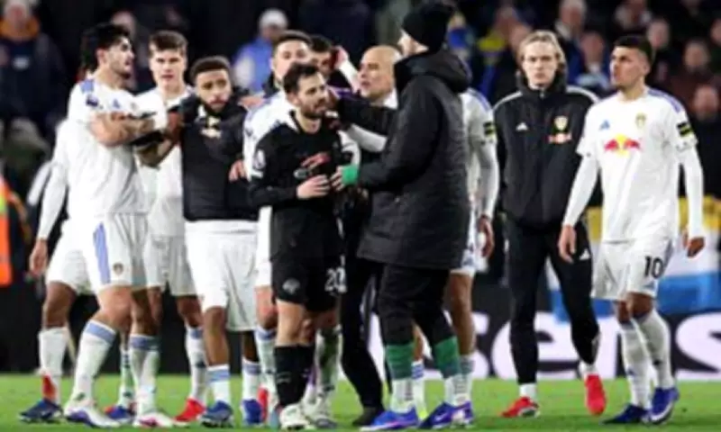 Meanwhile, Manchester City captain Bernardo Silva had to be led away by staff after appearing to goad Leeds fans behind one goal, adding to the fractious atmosphere that persisted long after the match had concluded.
