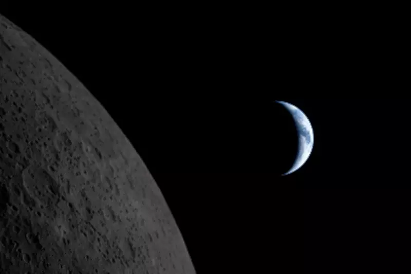 The Earth is seen behind the moon in this image captured by the Artemis II crew. After the success of the historic lunar flyby, the Trump administration is setting plans in motion for lunar nuclear reactors (NASA)