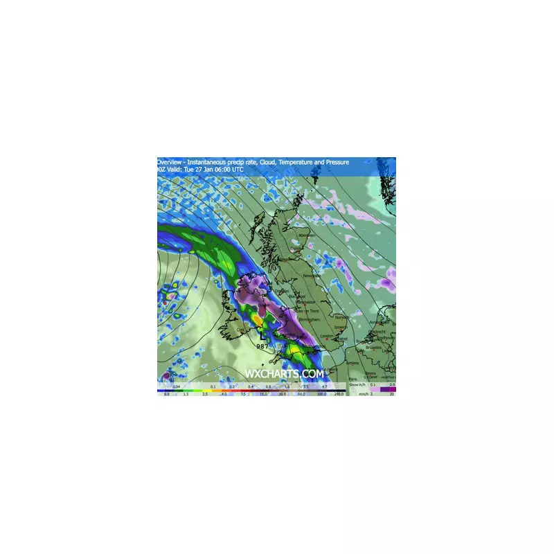 The Met Office's long-range forecast from January 26 to February 4 says some snow is likely across hills in Scotland and northern England. However, forecasters said snow could also extend to other areas. Now, the ECMWF weather model appears to confirm the predictions, showing snowfall hitting areas including Northern Ireland and Wales from the early hours of January 27.