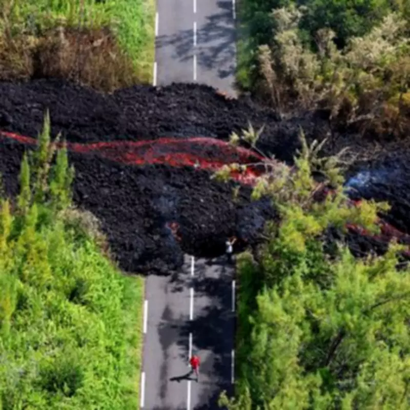 Incredible photographs captured the moment lava flowed across the RN2 road, effectively splitting it in two. This disruption to a key national route highlights the immediate impact of the volcanic activity on local infrastructure and transportation networks. The lava flows have not only damaged the road but also consumed surrounding woodland, creating a stark visual of nature's raw power.