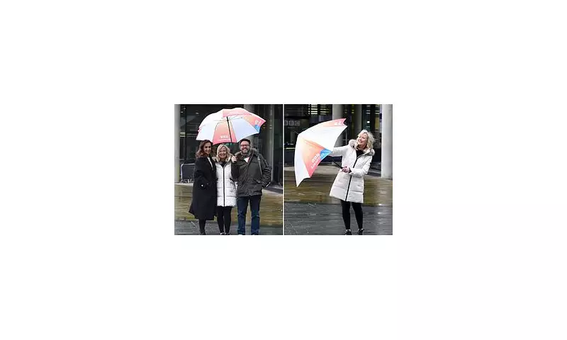 Following her emotional announcement, Kirkwood was comforted by co-presenters Nugent and Kay, who offered tissues and warm hugs live on air. The trio later posed for photographs outside the Salford studios, with Kirkwood battling a BBC Breakfast umbrella against heavy rain while smiling broadly in a long white coat.