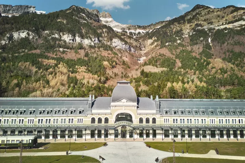The luxury Canfranc Estación hotel sits majestically inside the historic Canfranc International railway station. Originally opened in 1928 as a crucial cross-border rail hub between Spain and France, the station's stunning Beaux-Arts architecture was reinvented as a five-star hotel in 2023. Guests in its 104 rooms will enjoy a Michelin-starred restaurant, a luxurious spa, breathtaking mountain views, and easy access to premier ski resorts such as Astun.