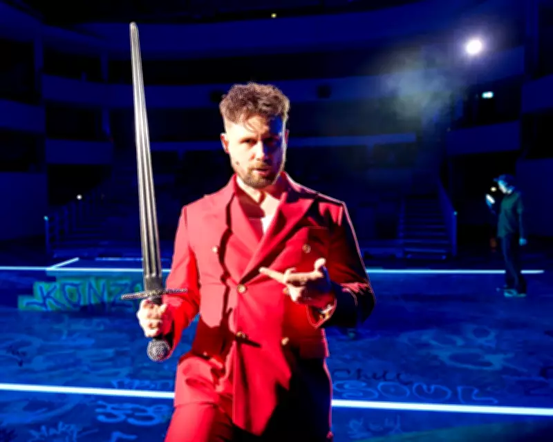 At the heart of the story is Hugo Bang, a character reminiscent of Andrew Tate, brought to life by Danny Hatchard of EastEnders fame. Dressed in a slick red suit, Hugo emerges from Aidan's social media scrolls, gradually captivating him through dramatised snippets that evolve into intense, nose-to-nose dialogues. The script deftly weaves together themes of class, male mental health, teen anxiety, and sexual assault, echoing elements of Jack Thorne's Adolescence but with a darker comedic edge.