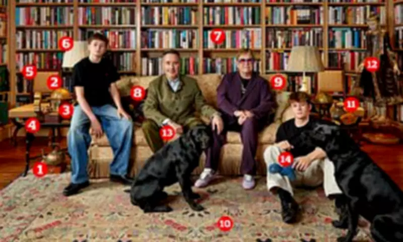 A new portrait capturing Sir Elton John with his family at their lavish estate in Old Windsor has been unveiled at London's National Portrait Gallery, offering a rare and intimate glimpse into their personal life. The photograph, taken by renowned photographer Catherine Opie, features the 78-year-old singer alongside his husband David Furnish, 63, their sons Zachary, 15, and Elijah, 13, and their two Labradors, Joseph and Jacob.