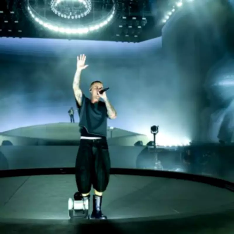Justin Bieber's set was notably stripped-down, with the singer wearing a hoodie, shorts, and sunglasses. Instead of delivering a high-energy performance, he sat on a stool and scrolled through YouTube videos of his songs on a laptop, playing a brief 12-song medley. This unconventional approach sparked outrage on social media platform X (formerly Twitter).