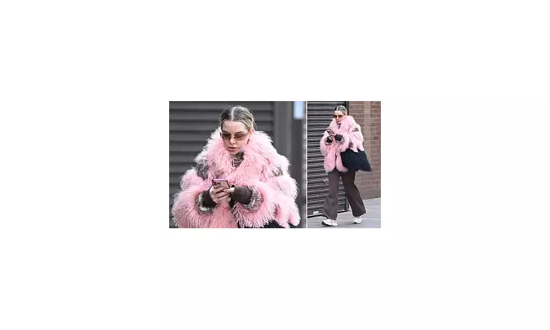 Helen Flanagan turned heads with her playful outfit choice for the rehearsal session. She donned a vibrant pink fluffy jacket, which she paired with flared brown trousers and chunky white New Balance trainers. The actress accessorised her look with tinted sunglasses and carried her belongings in a matching black fluffy bag. Notably, she went makeup-free for the outing and was seen typing on her phone as she made her way to the studio, presenting a relaxed yet focused demeanour.