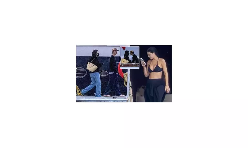 The celebrity pair were photographed cozied up at a secluded waterfront property, where they seemed completely absorbed in each other's company. Jenner, 28, showcased her toned physique in a stylish black triangle bikini top paired with loose-fitting black trousers, occasionally draping a sweatshirt around her waist as she checked her phone poolside. Her dark hair was slicked back in a casual yet elegant style, and she appeared refreshingly makeup-free as she relaxed on plush outdoor seating overlooking the picturesque Mexican coastline.