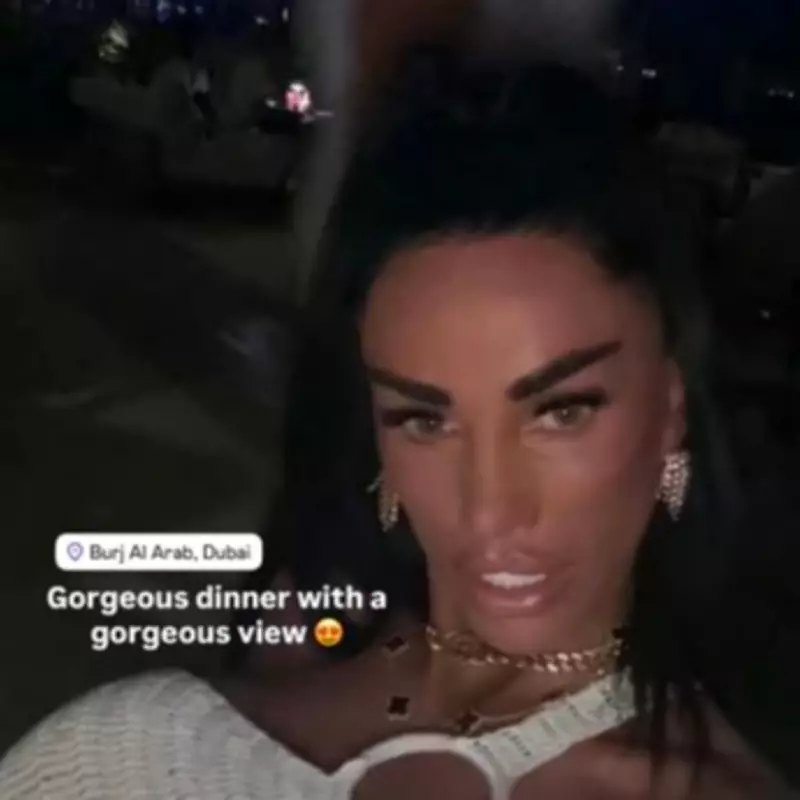 On Wednesday evening, Katie shared a glamorous selfie on social media, posing in front of the iconic Burj Al Arab. She captioned the photo, describing it as a gorgeous dinner with a gorgeous view. In the image, she wore her hair up, displayed a sun-kissed tan in a white dress, and accessorised with elegant gold jewellery.