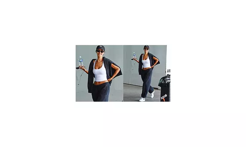 Dressed in a fitted vest top with a scooped neckline and navy blue jogging bottoms, Maya embraced comfort without sacrificing fashion. She completed her sporty look with a pair of Nike trainers and layered a matching sweater casually over her shoulders. Beaming with smiles, she shielded her face from the sun with a baseball cap and sunglasses as she exited the airport, exuding confidence and ease.