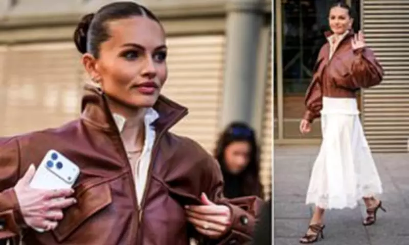 The engagement was confirmed by Blondeau through a series of social media posts the previous day. Attal proposed during their spring break at the luxurious five-star Four Seasons Astir Palace Hotel in Greece, presenting her with a ring valued at approximately £34,000. For the fashion week event, Blondeau commanded attention in a cropped leather jacket paired with a sweeping white lace skirt, taking a coveted front-row seat alongside notable actresses including Alice Isaaz, Lily James, Jessica Chastain, and Naomi Watts.