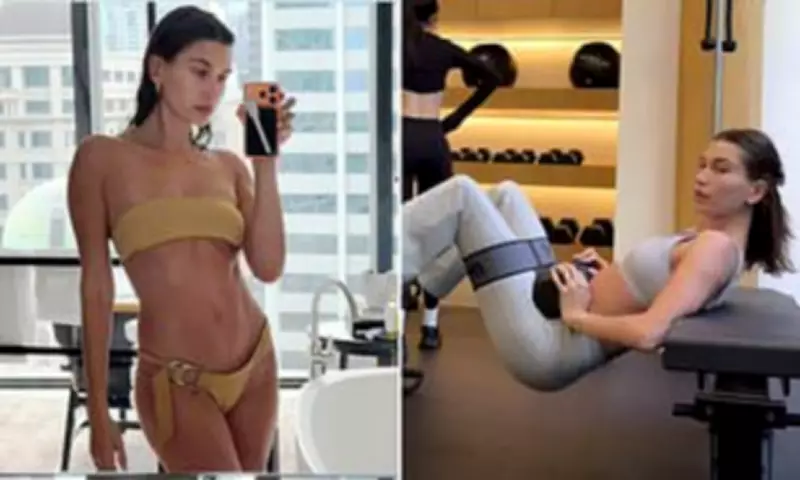 In the video, Hailey, who is married to pop superstar Justin Bieber, is seen performing challenging dumbbell hip thrusts while suspended between two benches. She humorously captioned the footage, describing it as part of a 'Saturday a** kick' session with Godso. The clip was set to the energetic track 'Call Back' by Don Toliver, adding a motivational soundtrack to her efforts.