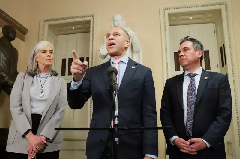 House Democratic Leader Hakeem Jeffries, alongside Minority Whip Katherine Clark and House Democratic Caucus chair Pete Aguilar, has delivered a forceful joint statement demanding immediate action. "We can do this the easy way or the hard way," they declared, warning that Noem "should be fired immediately, or we will commence impeachment proceedings."