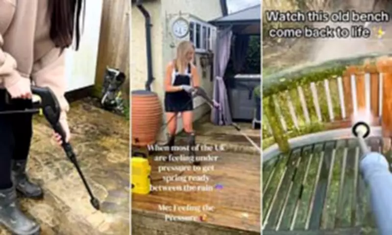 The power washing trend has gained significant traction across multiple social media platforms, with creators sharing their cleaning experiences to substantial audiences. TikToker Lucie Nicola, with 1,884 followers, achieved over 4,000 views on a single video showing her preparing her patio with a power washer, humorously captioning it "The pressure is on!"
