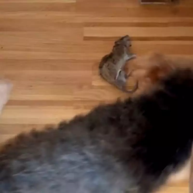Video footage from the incident captured the moment the rodent attempted to flee, only to be intercepted and dispatched within seconds by one of Sampler's working Lakeland terriers. "It made a run for it straight into one of our working Lakeland terriers, where it was dispatched within seconds," he added.