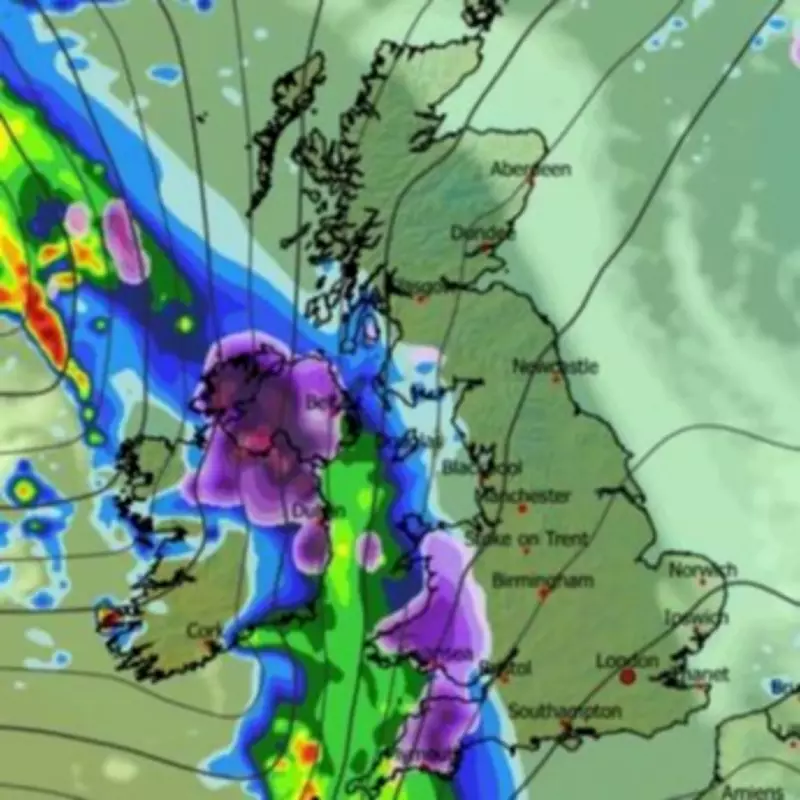 Weather modelling data from the ECMWF suggests the storm will first make landfall from the Atlantic Ocean on Saturday evening around 9pm. Initial snowfall is projected for Northern Ireland, Wales, and the southwestern regions of England. Cities such as Belfast, Swansea, and Plymouth are likely to be among the first areas affected by the accumulating snow.